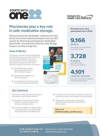 Join pharmacies around Washington that are making a difference. Sign up for the 120-day program to receive free materials and free locking bags for your customers.