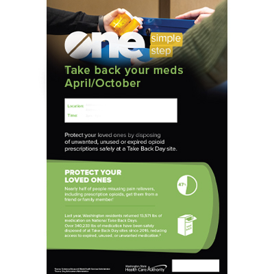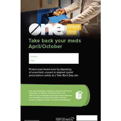 Use this customizable postcard to get the word out about your Take Back event in your community. This postcard also contains useful information about safe disposal options year-round, as well as facts about opioids and safe storage. For support with purchasing mailing lists and sending this postcard out in your community, please email campaign manager Esther Brown at estherb@wearedh.com.